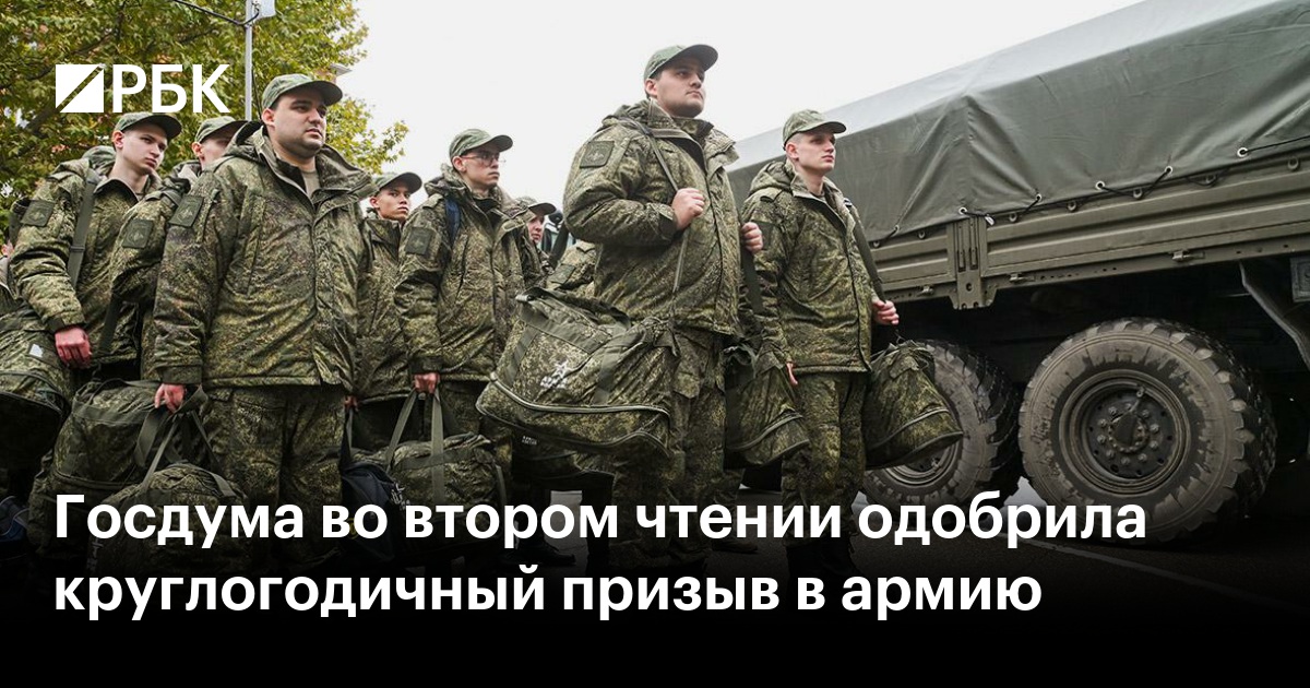 Госдума на пленарном заседании приняла во втором чтении законопроект о проведении призыва на военную службу в течение всего календарного года — с 1 января по 31 декабря. Поправки предусматривают, что в указанный период будут проводиться медицинское освидетельствование, профессиональный психологичес»»»