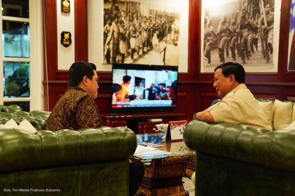 Prabowo Terima Kunjungan Erick Thohir di Kemhan, Koordinasi Rutin Empat Mata