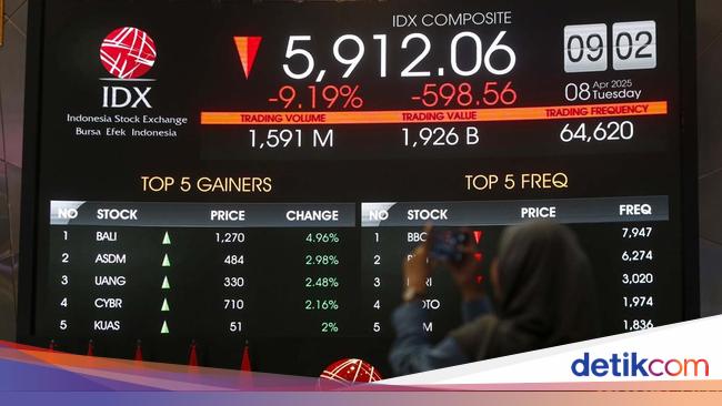 Jakarta - Indeks Harga Saham Gabungan (IHSG) terperosok cukup dalam, hingga tembus 9% pada perdagangan pagi ini. Kondisi ini membuat Bursa Efek Indonesia (BEI) terpaksa melakukan trading halt atau penghentian sementara perdagangan pasar saham dan batas Auto Rejection Bawah (ARB). Dalam kondisi ini,»»»