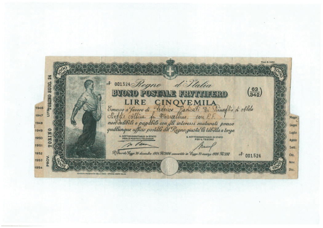 il conte Radicati di Primeglio porta in tribunale il Mef per un buono postale da 5mila lire