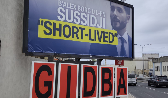 The Nationalist Party has clapped back at Labour's billboards targeting Opposition Leader Alex Borg's stance on "short-lived" energy subsidies. A photo sent to MaltaToday shows a PL billboard in Marsa in the background and four mini billboards spelling out the word "GIDBA" (LIE). The PN also publis»»»