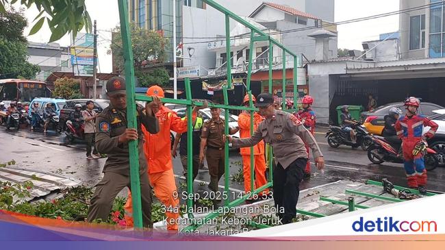 Jakarta - Hujan deras disertai angin kencang membuat atap terbang di Kebon Jeruk, Jakarta Barat. Atap tersebut kemudian menimpa mobil yang tengah melintas di lokasi. Kapolsek Kebon Jeruk Kompol Nur Aqsa Ferdianto mengatakan peristiwa tersebut terjadi di Jalan Raya Lapangan Bola, Kebon Jeruk, pada p»»»