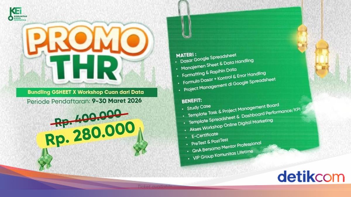 Jakarta - Punya THR setelah lebaran? Ubah THR jadi kesempatan untuk upgrade skill yang menghasilkan. Salah satunya, kemampuan mengolah data seperti Excel dan Google Spreadsheet yang kini jadi nilai tambah nyata dan dibutuhkan di berbagai bidang. Melalui Promo THR KEI Learning, kamu bisa langsung be»»»