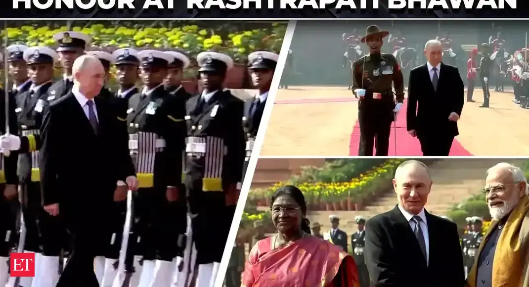 Russian President Vladimir Putin was welcomed by President Droupadi Murmu and Prime Minister Narendra Modi as he received a ceremonial welcome and the tri-services guard of honour at the forecourt of the Rashtrapati Bhavan on Friday. The ceremonial welcome was accorded at the forecourt of the Rasht»»»