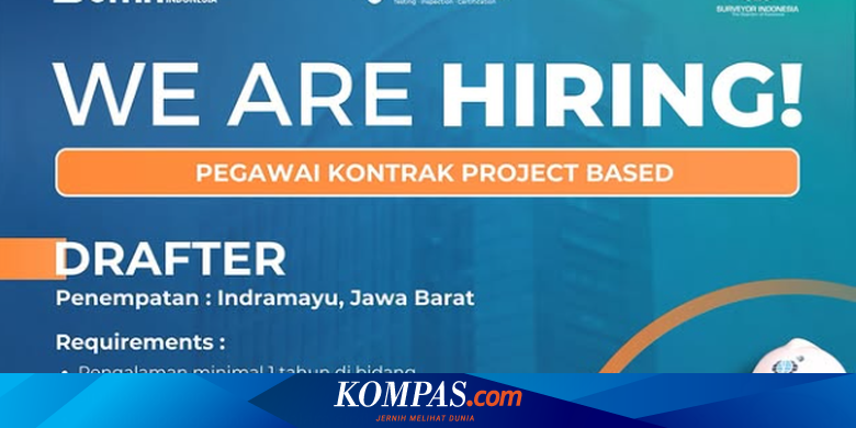 JAKARTA, KOMPAS.com - PT Surveyor Indonesia membuka lowongan pekerjaan yang bisa dilamar oleh lulusan D3 dari jurusan Sipil/Aristektur. Adapun posisi lowongan kerja yang dibuka yaitu Drafter. Lowongan kerja ini diperuntukkan bagi calon pelamar yang memiliki pengalaman 1 tahun di bidang sipil/pemban»»»