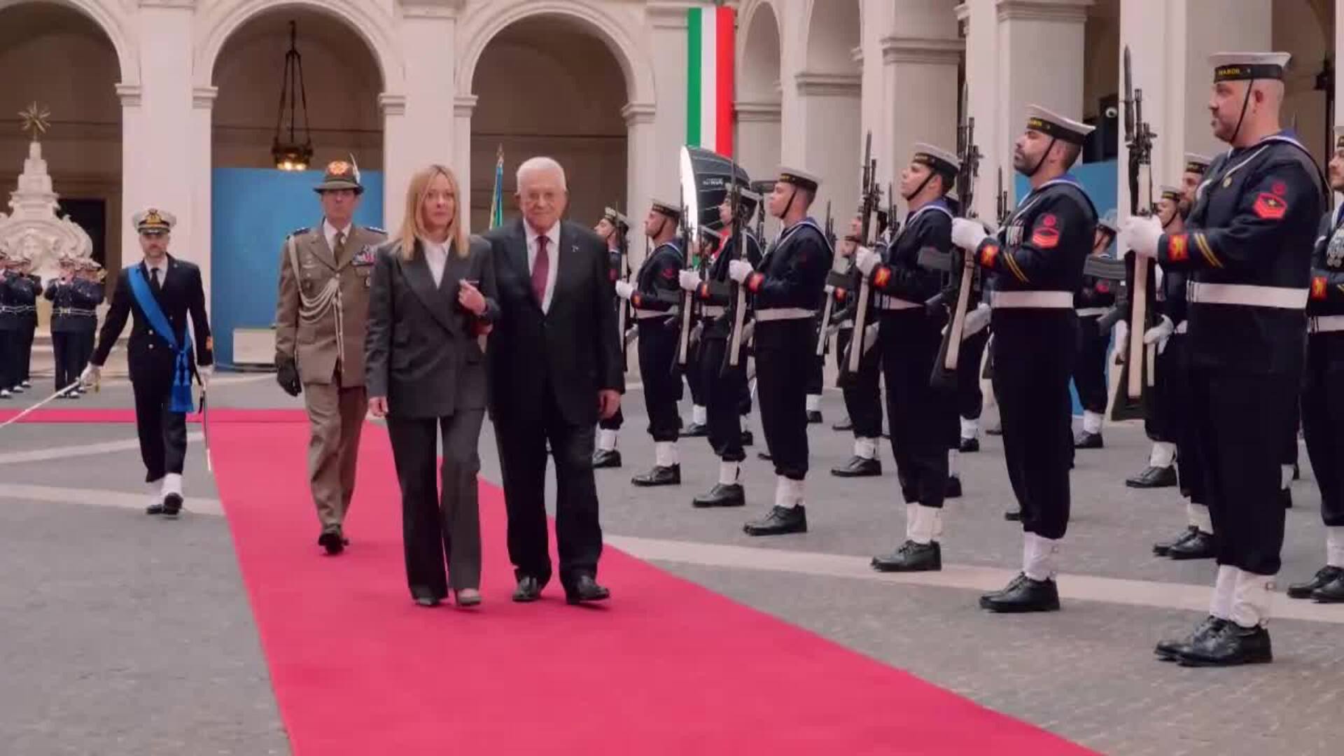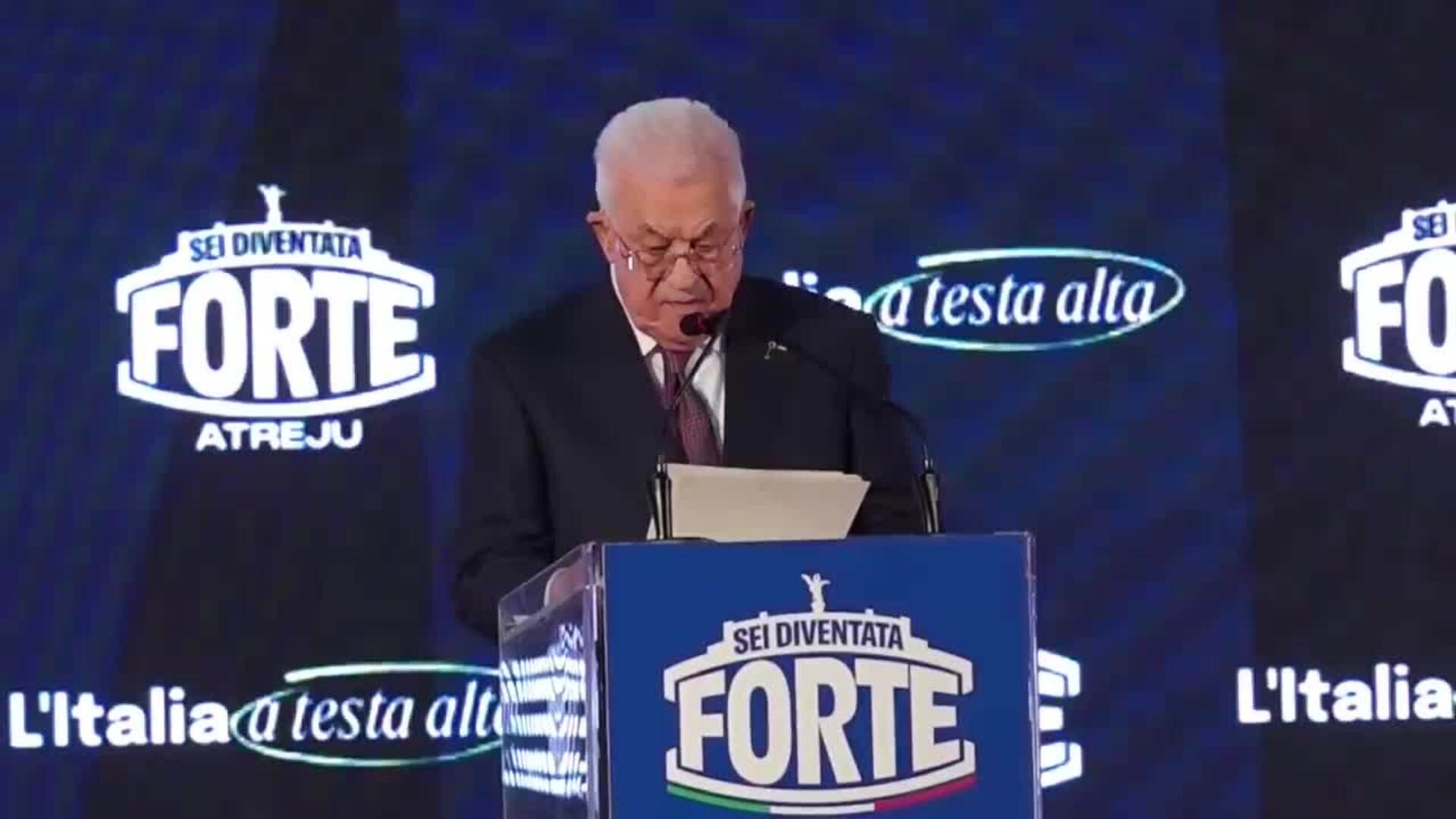 El presidente de la Autoridad Palestina llega a un acto de las juventudes de Hermanos de Italia