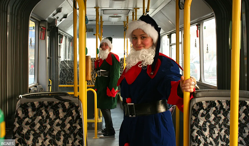 Ретро коледен автобус тръгва из празнична София