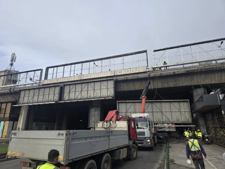 ВИДЕО | Отстранет првиот билборд од Железничката станица Скопје