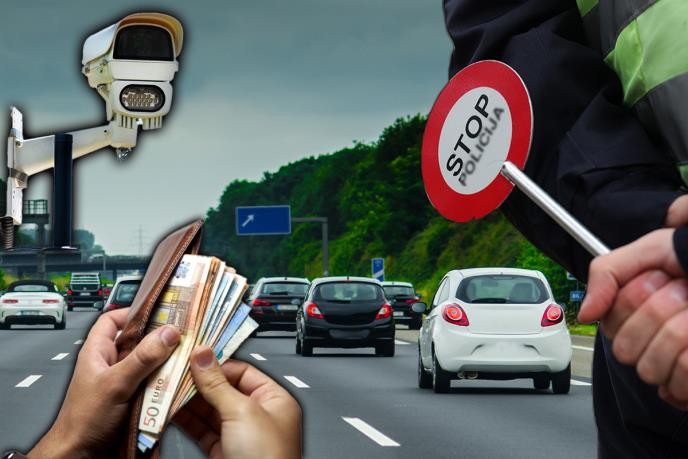 За пречекорување на брзината, казните зависат од тоа за колку километри на час е надмината дозволената граница: – до 20 km/h над дозволеното: 20 евра во денарска противвредност – од 20 до 30 km/h: 45 евра – од 30 до 50 km/h: 300 евра, и забрана за управување со возило од 3 до 12 месеци – над 50 km/»»»