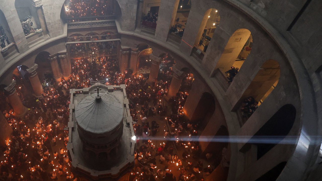 Сваке године православни ходочасници из целог света окупљају се у источнојерусалимској цркви Гроба Господњег уочи православног Ускрса. Верници се моле и пале бакље и свеће из пламена за који верују да је чудесно запаљен у Исусовом гробу у цркви. ☦️Silazak Blagodatnog ognja u Hramu Vaznesenja Hristo»»»