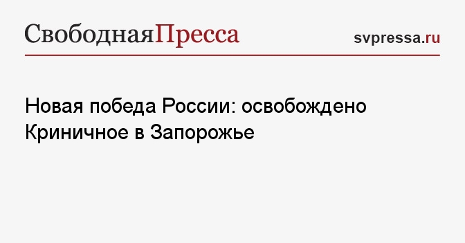 Вооруженные силы России освободили населенный пункт Криничное Запорожской области. Добились этого силами бойцов 218-го танкового полка 127-й мотострелковой дивизии 5-й армии группировки войск «Восток». «Заходили мы с правого фланга. Закрепились, зашли в дом. Противник ведет ожесточенные бои, держит»»»