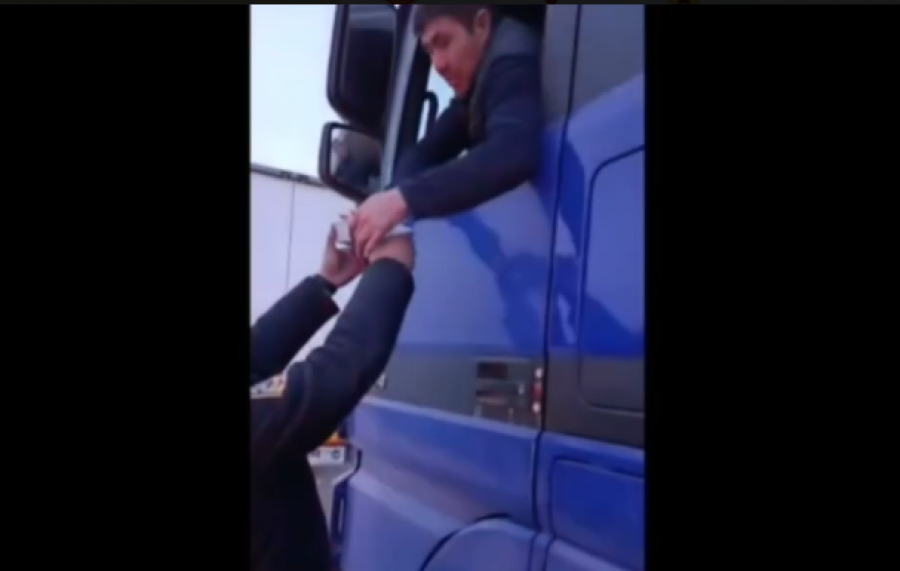 Милиция Кыргызстана предоставила горячее питание водителям грузовиков на кыргызско-казахской границе