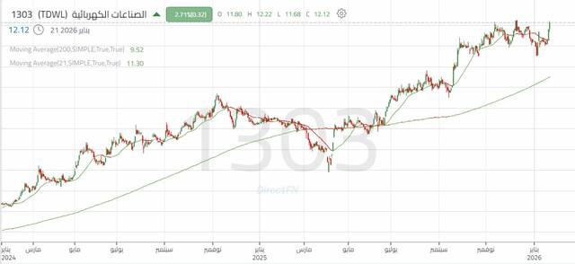 سهم "الصناعات الكهربائية" يقترب من القمة التاريخية