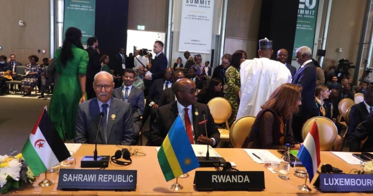 الاثنين 24/11/2025 لواندا (انغولا) 24 نوفمبر 2025 (واص)- شدّد رئيس الجمهورية الصحراوية، السيد ابراهيم غالي، في خطابه اليوم أمام أشغال القمة السابعة للاتحاد الإفريقي والاتحاد الأوروبي المنعقدة في العاصمة الأنغولية لواندا، على مركزية قضية الصحراء الغربية في أي مقاربة حقيقية للسلم والأمن بالقارة الأفر»»»