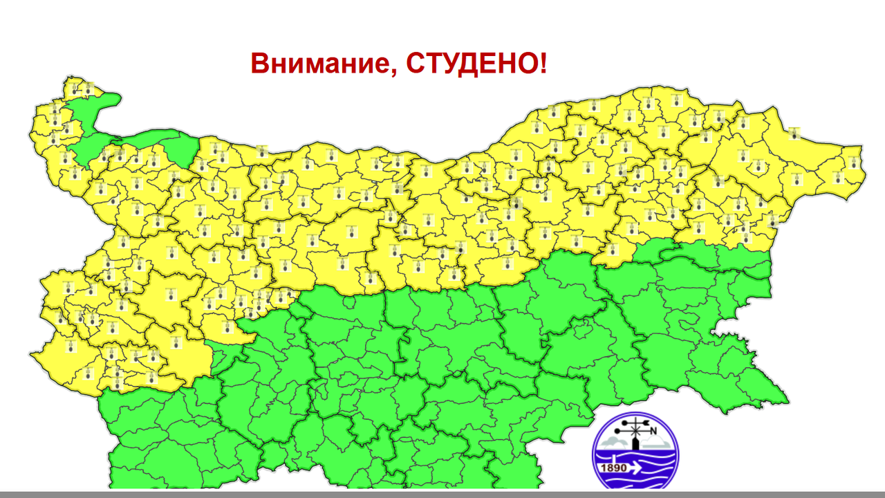 Националния институт по метеорология и хидрология (НИМХ) издаде предупреждения за опасни метеорологични явления за днес. Зимната обстановка в страната се усложнява, като основната опасност са обилните снеговалежи, придружени от силен вятър, което създава предпоставки за виелици и навявания. Оранжев»»»