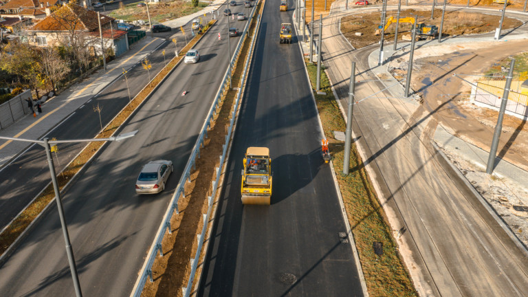 Полагат последен пласт асфалтобетон в новия участък от бул. "Рожен" в София