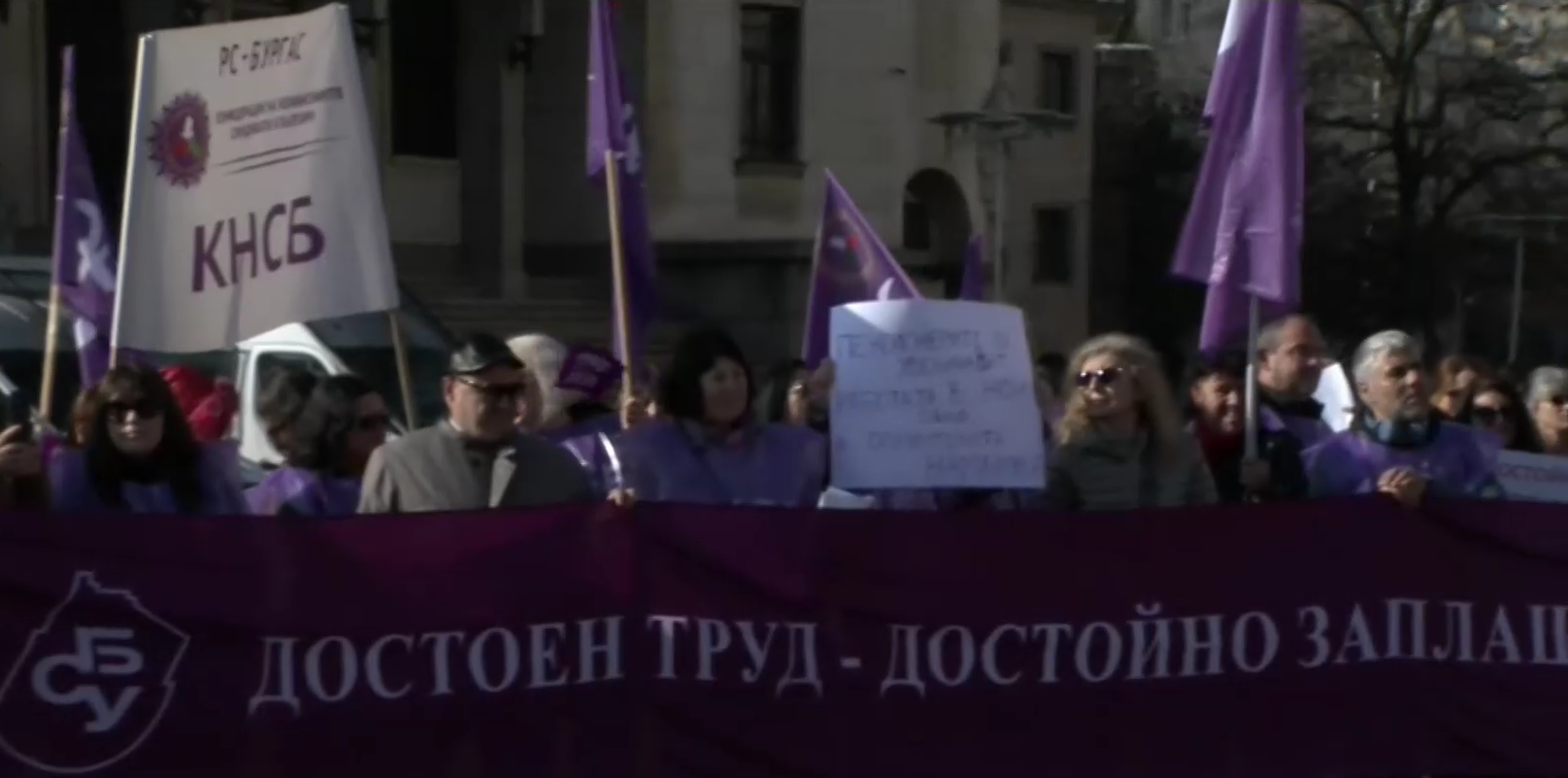 КНСБ с протест срещу бюджета в центъра на София КНСБ с протест срещу бюджета в центъра на София. Акцията е под надслов "НЕ" на разединението на работещите! "ДА" на по-високите доходи!". Хората са с конкретни искания: Хоризонтална политика по доходите от 10%, законодателни промени за насърчаване на »»»