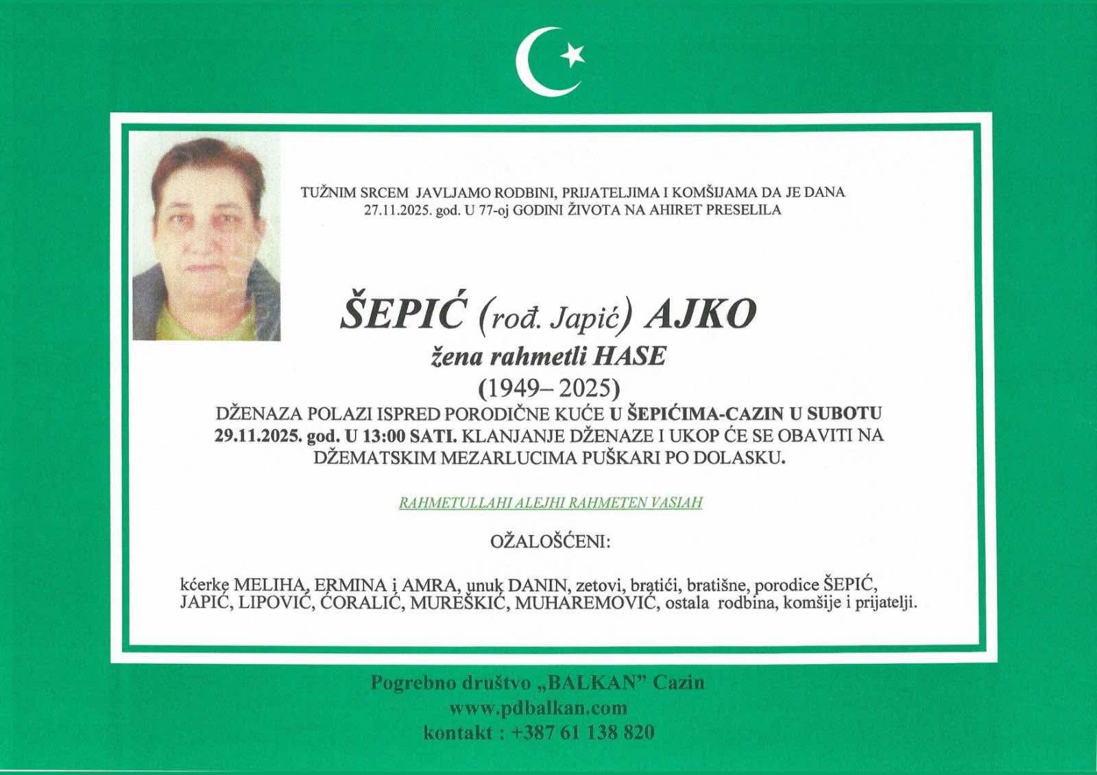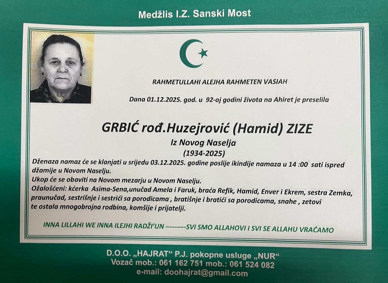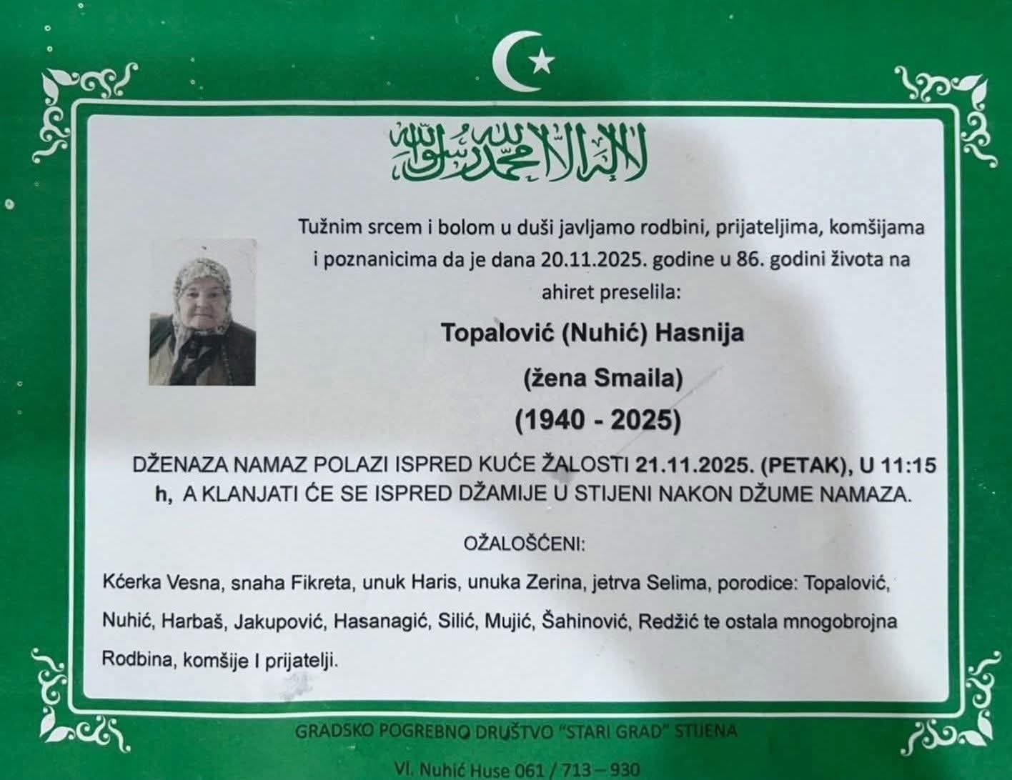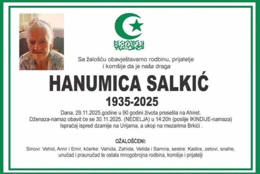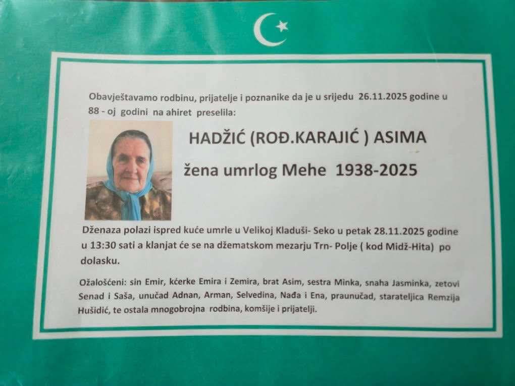 Na Ahiret preselila Muhić (rođ. Ćatić) Fatima | Cazin.NET