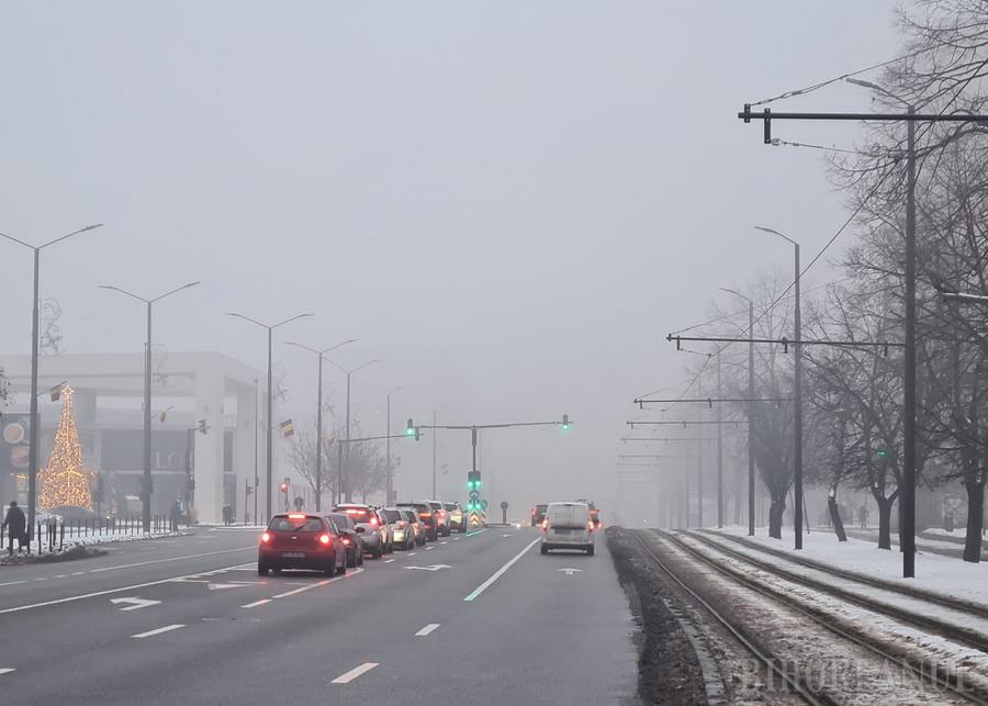 Cod galben de ceață în mai multe localități din Bihor, inclusiv în Oradea: vizibilitate sub 200 de metri, izolat sub 50 m