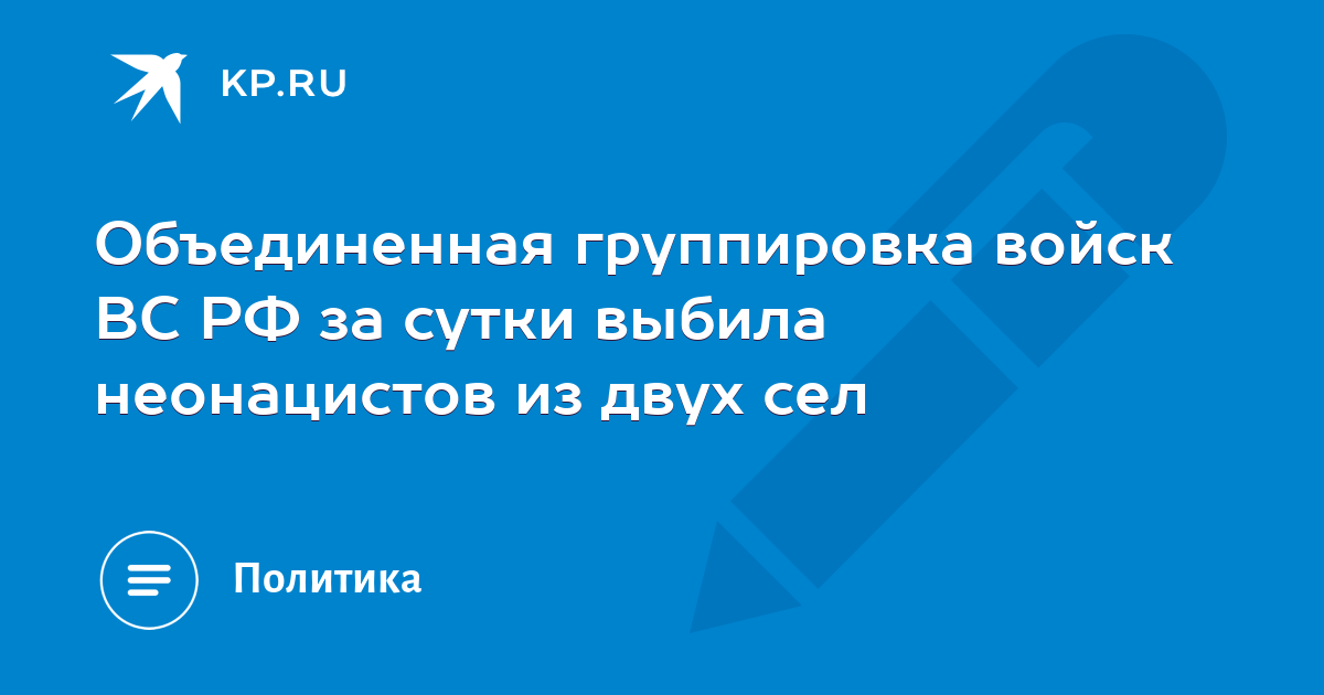 Объединенная группировка войск ВС РФ за сутки выбила неонацистов из двух сел