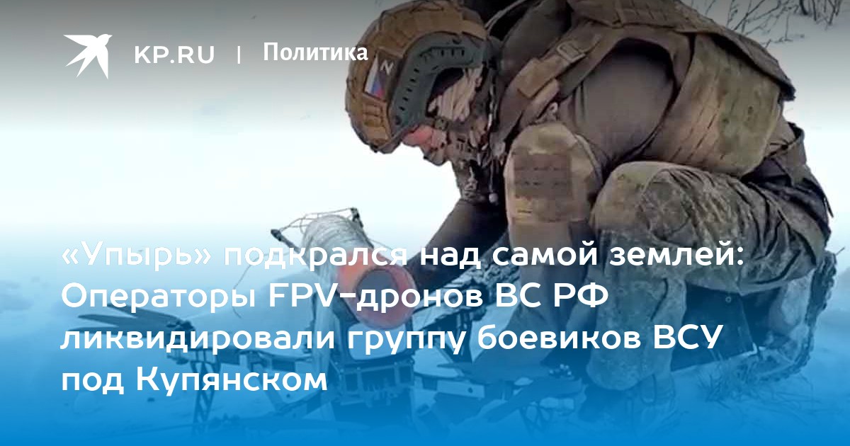 Дрон "Упырь" незаметно подкрался и уничтожил группу боевиков ВСУ под Купянском Фото: Минобороны РФ. Расчеты ударных дронов войск беспилотных систем в составе 27-й гвардейской отдельной Севастопольской мотострелковой бригады 1-й гвардейской танковой армии группировки войск «Запад» продолжают успешно»»»