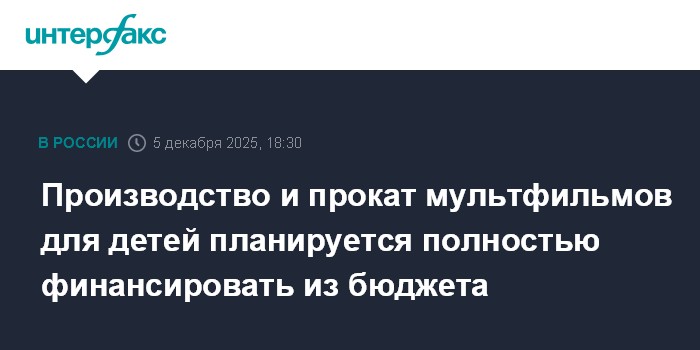 Производство и прокат мультфильмов для детей планируется полностью финансировать из бюджета