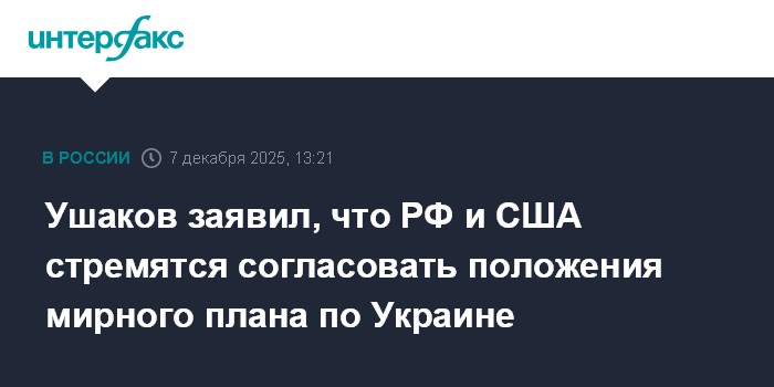 Ушаков заявил, что РФ и США стремятся согласовать положения мирного плана по Украине