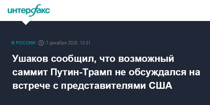 Ушаков сообщил, что возможный саммит Путин-Трамп не обсуждался на встрече с представителями США