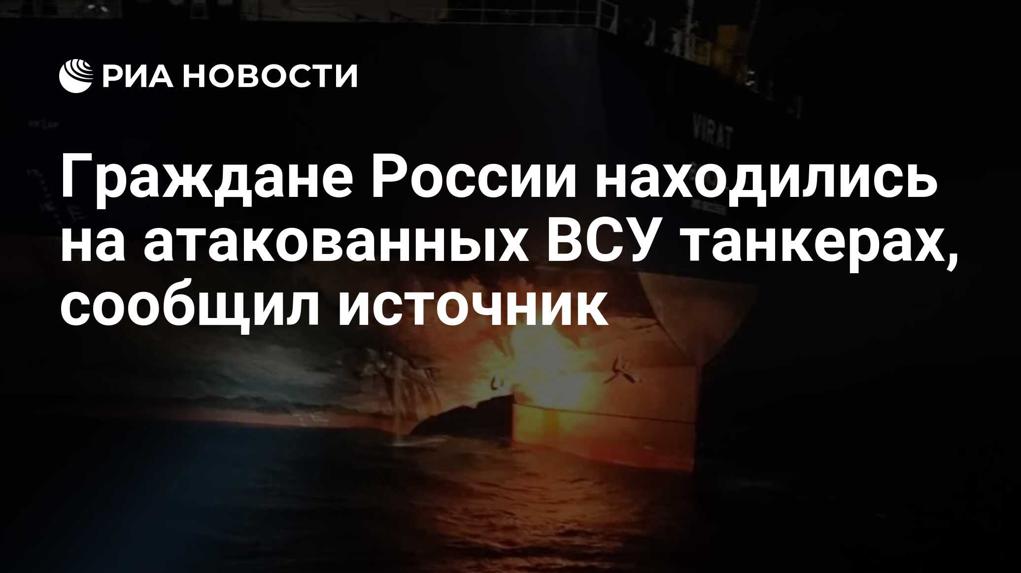 На борту двух танкеров, которые подверглись целенаправленным атакам ВСУ в Чёрном море, находились граждане РФ. Об этом передаёт РИА Новости со ссылкой на свои дипломатические источники в Москве. По словам собеседников агентства, танкеры Virat и Kairos, следовавшие через исключительную экономическую»»»