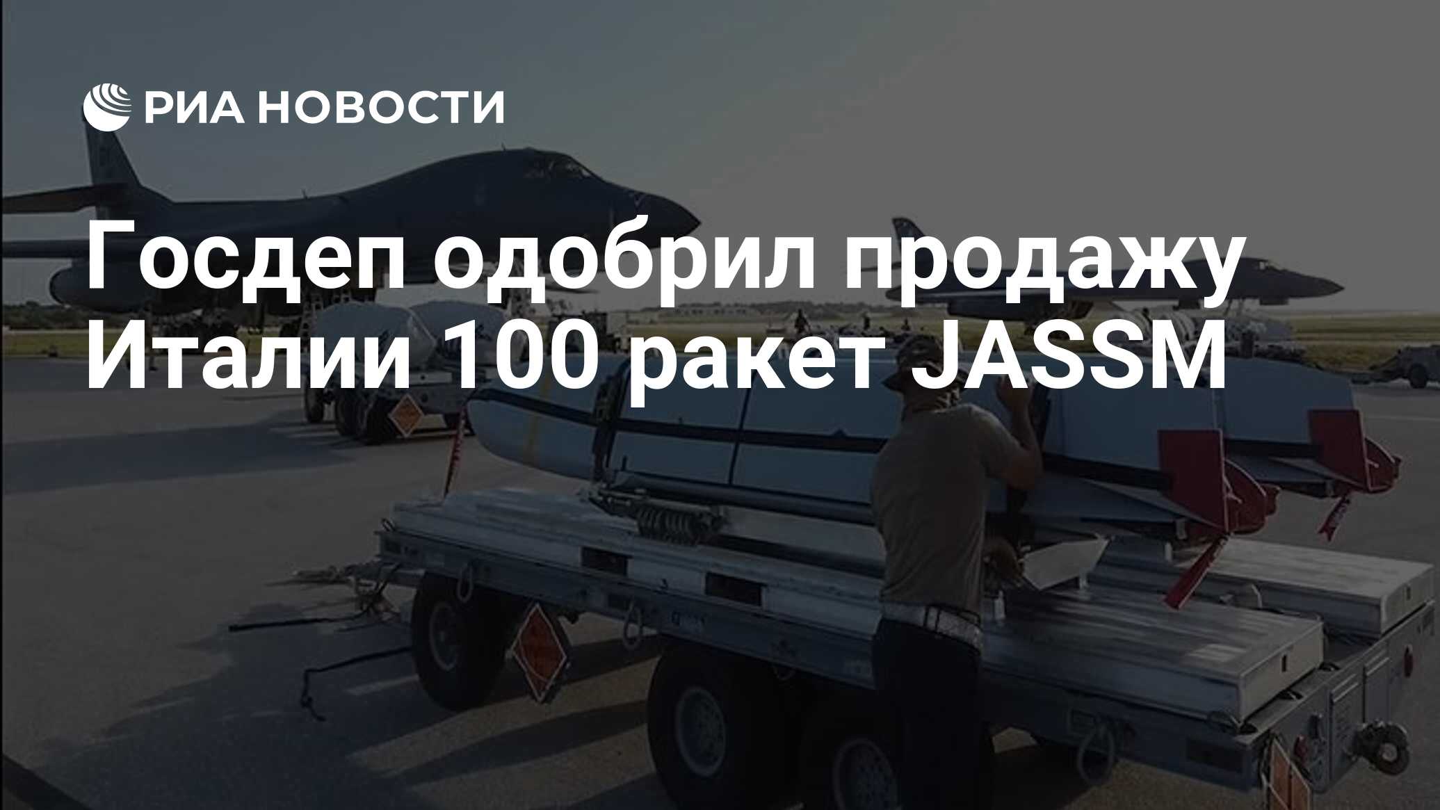 ВАШИНГТОН, 6 дек - РИА Новости. Госдепартамент одобрил возможную продажу Италии 100 ракет класса "воздух-поверхность" JASSM на более 300 миллионов долларов, сообщили в субботу в Пентагоне. "Государственный департамент принял решение об одобрении возможной продажи правительству Италии совместных рак»»»