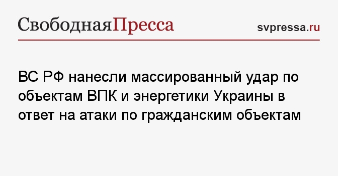 ВС РФ нанесли массированный удар по объектам ВПК и энергетики Украины в ответ на атаки по гражданским объектам