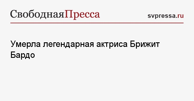 Умерла французская актриса Брижит Бардо. О смерти французской актрисы сообщают Le Figaro и AFP. Ей был 91 год. Французская актриса, секс-символ 60-х годов скончалась в Париже, пишет АFP. 50 лет жизни она провела вне камер, посвятив себя защите животных. Причина смерти актрисы не сообщается. За всю »»»