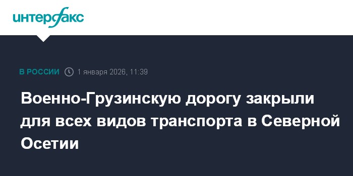 Москва. 1 января. INTERFAX.RU - Движение всех видов автотранспортных средств на участке Военно-Грузинской дороги запрещено до особого распоряжения, сообщает пресс-служба Главного управления МЧС по Северной Осетии. "В связи с невозможностью безопасного проезда автотранспортных средств, а также с уче»»»