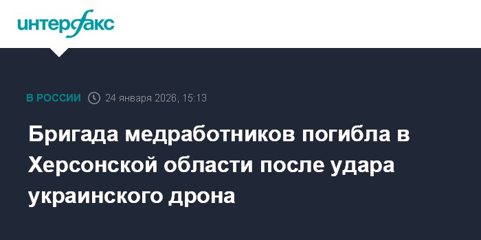 Москва. 24 января. INTERFAX.RU - Три человека погибли в Херсонской области после удара беспилотника ВСУ по медицинскому автомобилю, сообщил губернатор региона Владимир Сальдо в субботу. "Все члены бригады медицинского автомобиля, атакованного сегодня украинским дроном, погибли", - написал он в свое»»»