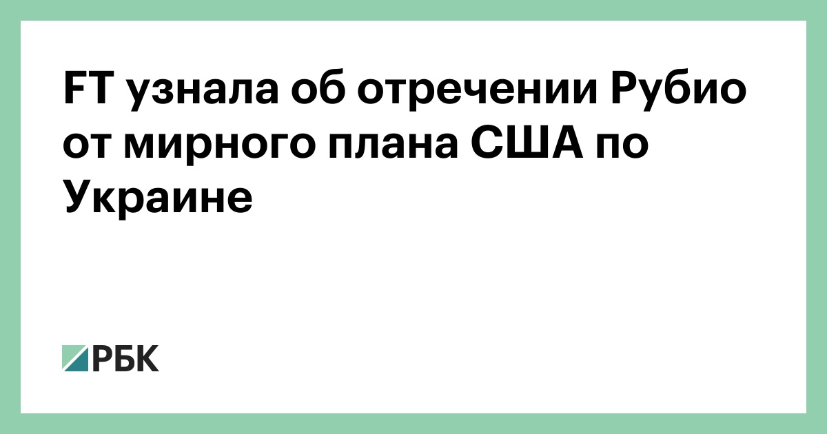 FT узнала об отречении Рубио от мирного плана США по Украине